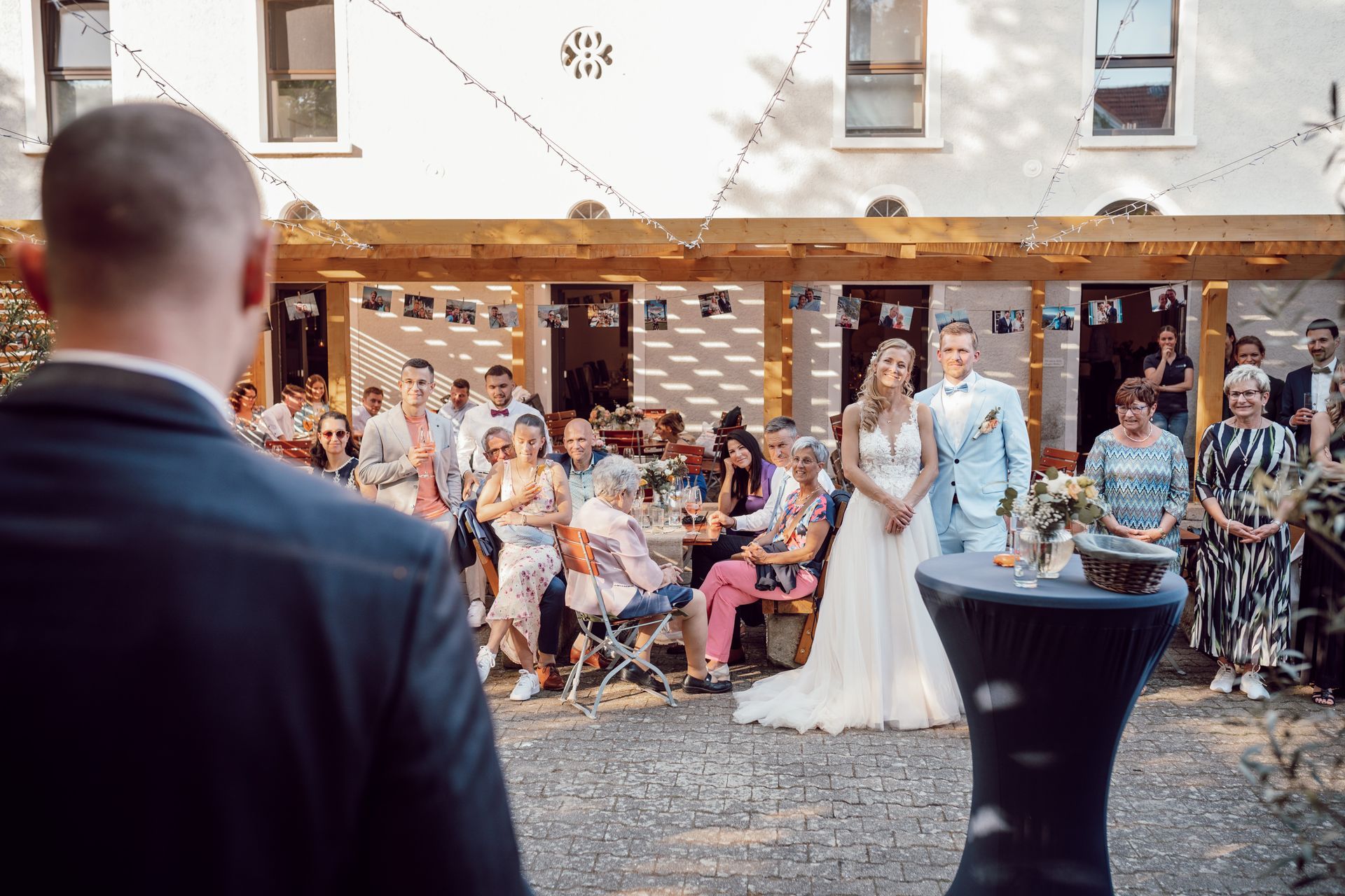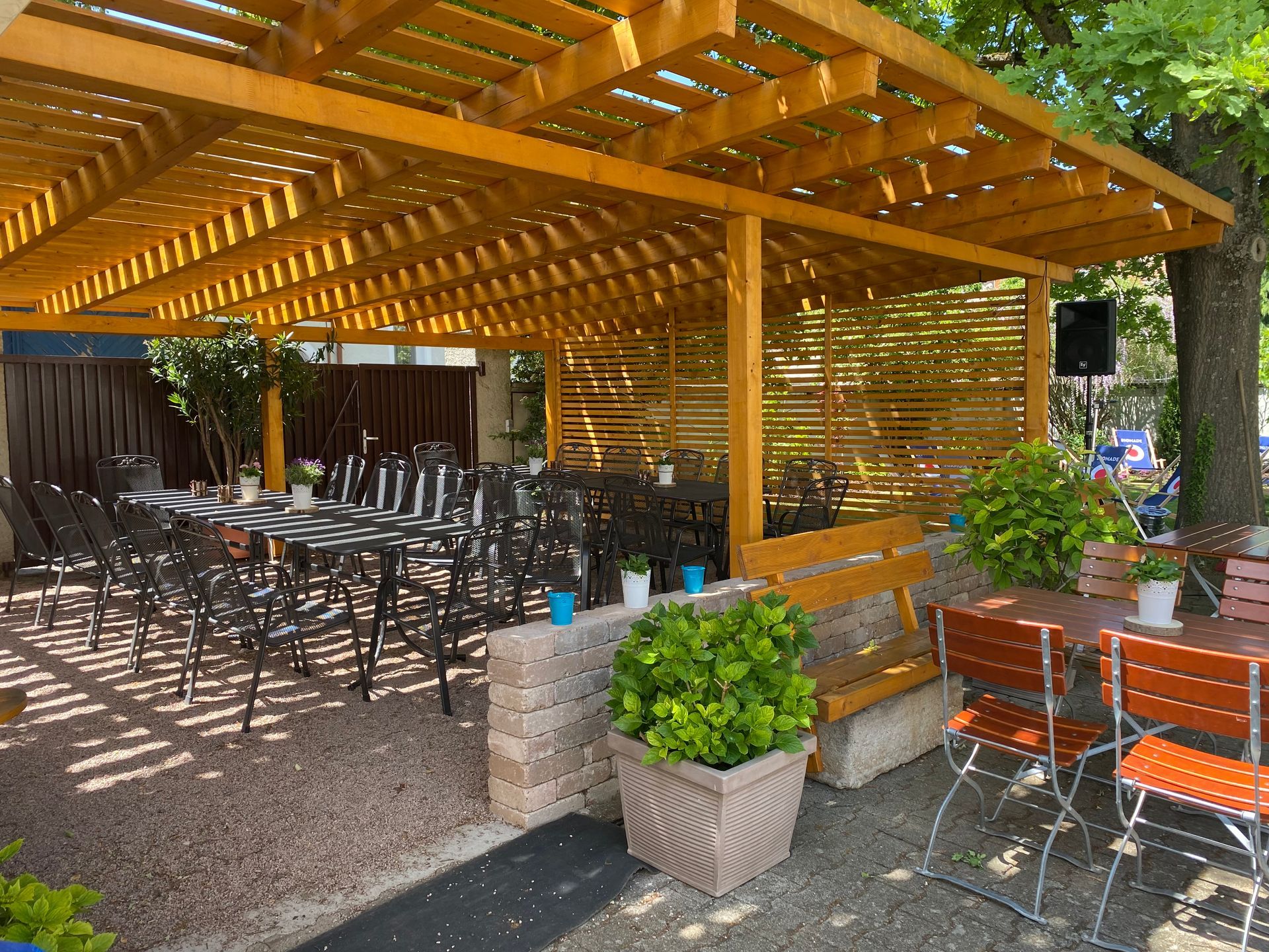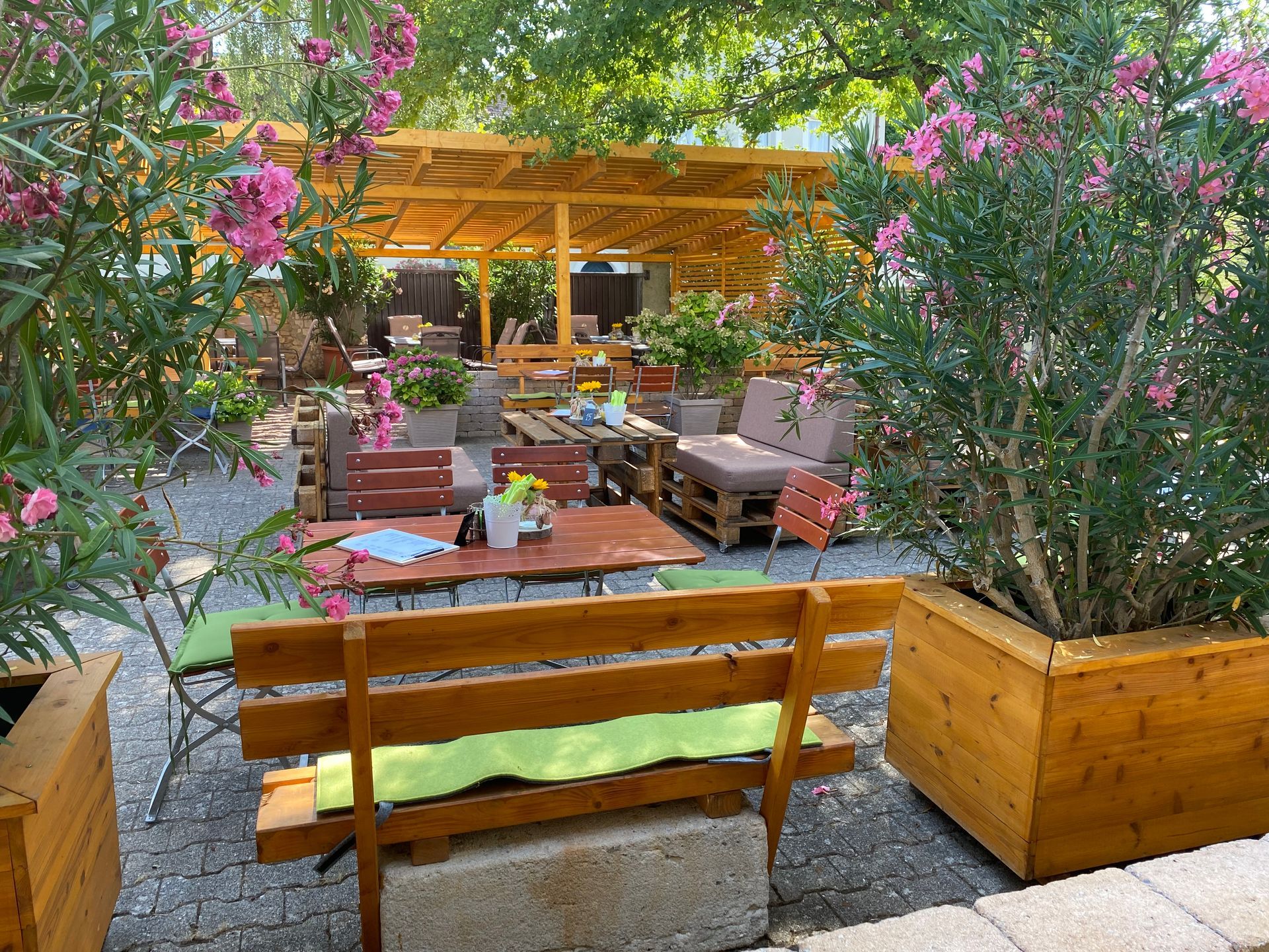 In unserem Kreuzgewölbe finden bis zu 65 Personen Platz. Im angeschlossenen Außenbereich hat man mehrere Möglichkeiten, ob auf unserer Terrasse, unter der Sommer-Loggia oder dem grünen Rasen. Die blühenden Orleander, Hotensien und die große alte Eiche verleihen dem Ganzen ein ganz besonderes Flair. Abseits einer Hauptverkehrsstraße genießt man die Ruhe, die der kleine Ort Eimsheim ausstrahlt. Nicht ohne Grund wird dieser kleine Ort auch als das kleine Paris bezeichnet.